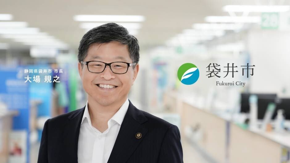 静岡県西部に位置し、田園地帯や茶畑といった豊かな自然環境に恵まれている静岡県袋井市。東名高速道路など主要交通路が横断しており、東京・名古屋・大阪といった主要都市へのアクセスも良好な地です。そんな同市の先頭に立って改革を進めてきたのが、2005年4月の市制施行後、初となる民間出身市長となった大場規之(おおばのりゆき)市長。これまでに様々な分野の民間企業を経験しており、海外経験や代表取締役としての実績も豊富です。また、現在も民間企業の役員を務めるなど、活動範囲は多岐にわたります。
