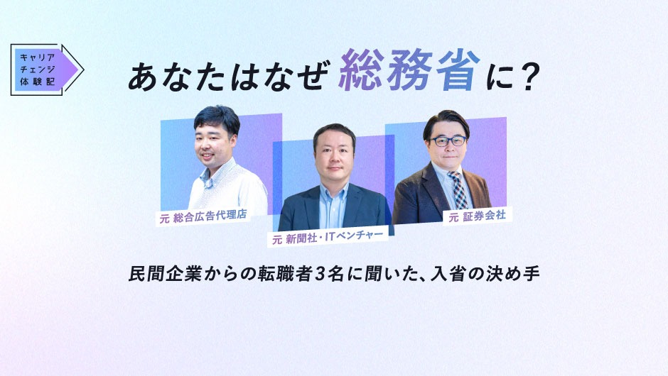 こうした取り組みをさらに推進しつつ、変革を加速させるためには、多様なバックグラウンドや専門性を有する人材が不可欠です。これまでも民間出身者の採用に力を入れ、金融、メーカー、広告、コンサル、出版、商社など、あらゆる業界の出身者を積極的に採用してきた総務省。今年度からはより多くの方に挑戦の機会を提供するため、公募回数を年2回から年4回に増やし、エン協力のもと広く人材を募ります。